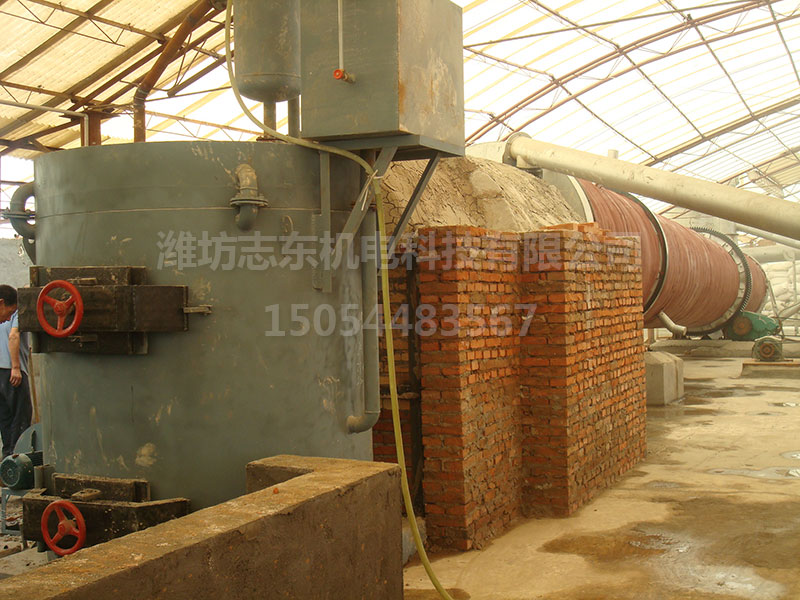 鋸末烘干機:包括熱風爐、進料口、旋轉筒、過濾筒、物料輸送管、冷卻筒和出料口;其中旋轉筒位于主動滾輪上,主動滾輪靠電機及減速傳動帶動旋轉筒低速轉動,生熱爐與旋轉筒之間設有進料口,旋轉筒內設有翻炒葉片,在旋轉筒與過濾筒相連處設有擋板,擋板上開有一小孔,過濾筒一端與旋轉筒相連,另一端與物料輸送管相連,過濾筒內設有擋塊,過濾筒的底部設有排渣孔,冷卻筒一端通過鼓風機與物料輸送管相連,另一端與出料口相連。由于采用上述結構,所以鋸末能在旋轉筒內充分干燥,且鋸末在進入物料輸送管前再次充分散開,使水分蒸發快,擋塊可將鋸末中的雜質擋住,###進入物料輸送管中鋸末的質量。鋸末進入鋸末烘干機內由噴吹管與回轉筒體共同作用,在筒內沸騰流化,熱風與物料充分觸,完成干燥。
